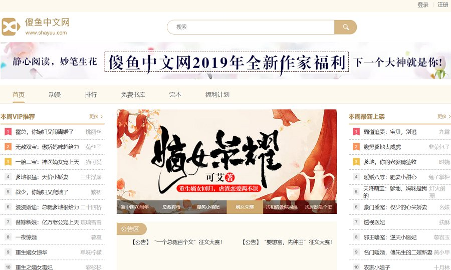 傻鱼中文网 推广置顶推荐傻鱼是新兴女性原创文学网站,隶属于杭州傻鱼文化传媒有限公司,成立于2018年,具有雄厚的势力,顶尖的团队。傻鱼以推动中国原创文学事业为宗旨,长期致力于原创文学作者的挖掘与培养,目前与众多出版机构、影视公司和无线版权运营机构具有深度合作。主要提供在线阅读、无线阅读、影视改编、游戏改编、动漫改编、实体出版服务等业务。