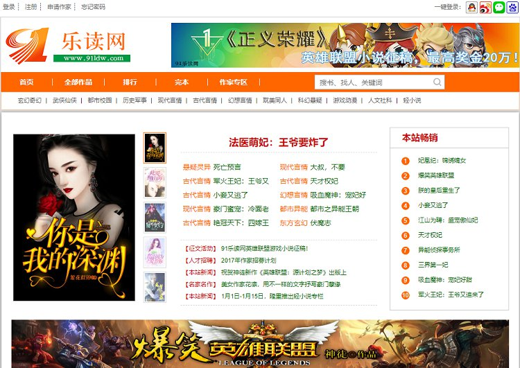 91乐读网 推广置顶推荐91乐读网是杭州炫阅网络科技有限公司旗下小说网站,以原创首发为核心,专注轻松幽默风格,涉足影视小说剧本创作改编,提供经典玄幻小说,奇幻小说,都市小说,二次元文化等完本小说作品。